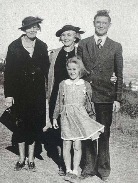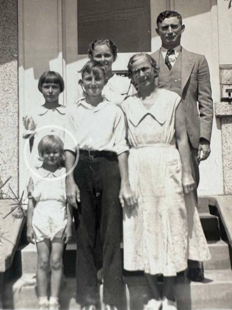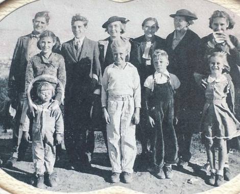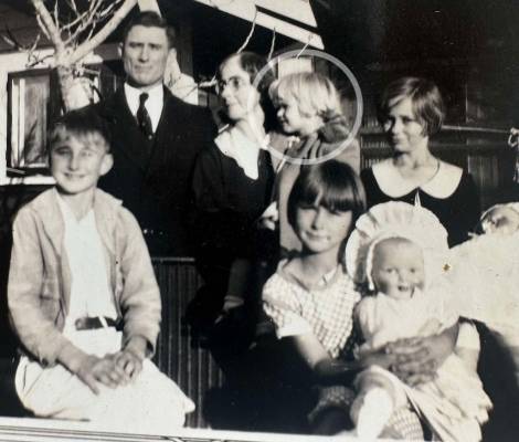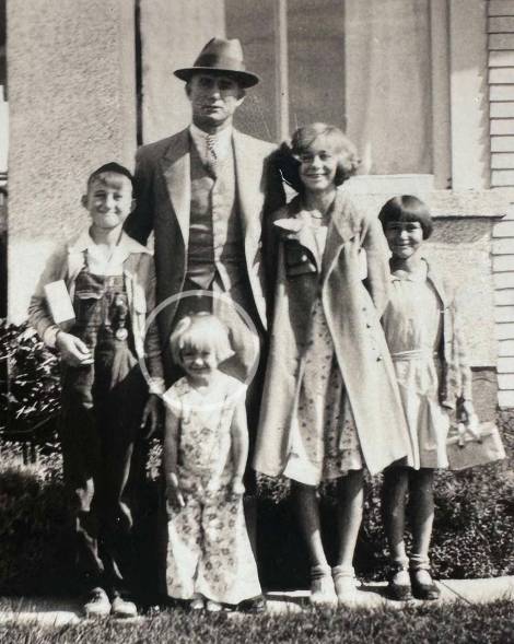 Adeline around 8yrs old with cousins,Dad Fred with his pistol pose