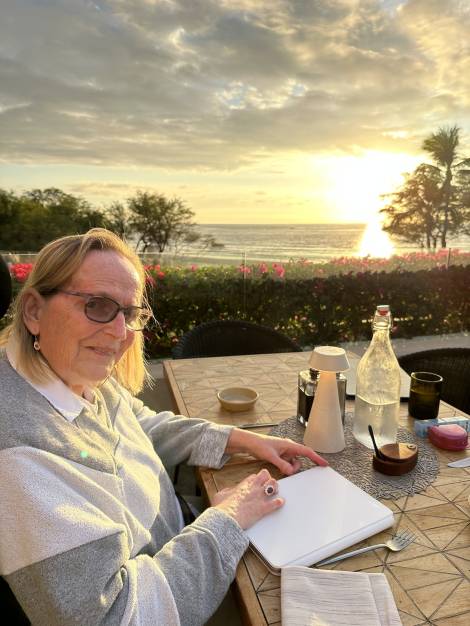 Andrea was fearless and single minded, with a will that couldn’t be broken. She liked challenges, not because she wanted to beat others, but to prove to herself she was capable. When she decided to play the oboe, she played it well. When our father taught us high dive skills, she outdid all the cousins by executing fluid swan dives from the diving board of Carmen’s swimming pool. Most of all she loved water, especially the ocean at Crystal Cove, where we swam all day and sometimes into the night under a full moon. We pelted one another with jelly fish, challenged one another to float without looking backwards at incoming waves, and found adventure in the tide pools where the inky blue of the squid was always a spectacle of wonder.