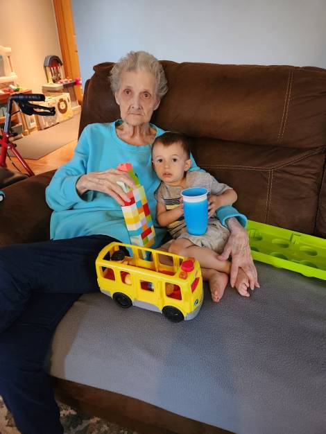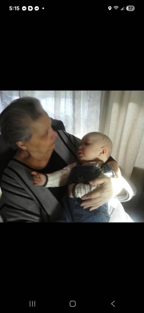 Last time I saw my grandma, my oldest baby was 3 months old now he is 13. This is how I want to remember my grandma. Holding her great grandson singing to him the little rhymes she would sing my cousin's and I. I love you grandma. RIP grandma.