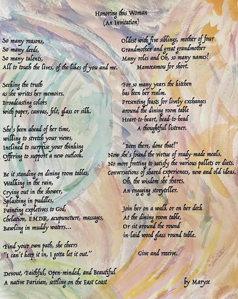 "I thank God for Each One of You. Your Presence and Your Love, the Ups and Downs of each of Your Hearts and Lives and for Those who have gone before Us. May Each One of Us do Our Best to bring Love and Peace to All who have come into Our Lives. Now and Forever ~ You are in my Heart and Prayers~"