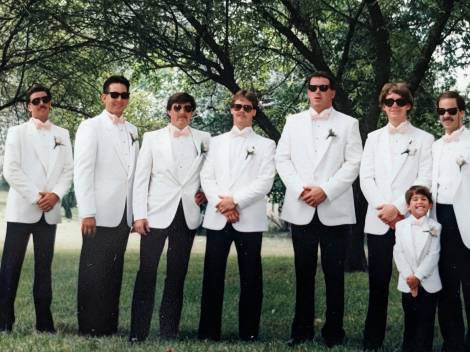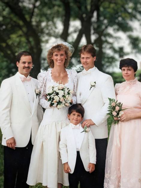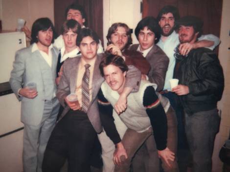 As we moved into our 20s and our careers started taking shape, we kept in touch for road trips, parties, and of course, weddings. A favorite memory was driving nonstop to spring break in Daytona in my Mustang GT, switching drivers, and never being encumbered by the speed limit. A few of our group gatherings still make me smile: the time Dave asked out my date in front of me at a party, and of course, Kim and Dave’s wedding, where I hit on his sister. And then there’s the party in the photo I’m sharing—the one where all the girlfriends insisted the guys dress up for once even though the party took place in an unfinished basement! I chose this picture because it includes our dear departed friends, George and Svend. So many memories in one frame.