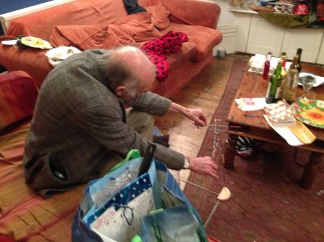 Here is a photo of a quiet moment during Christmas at Rachel's in 2013, when I happened upon David enjoying quality time with some grandchild's discarded present.