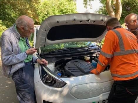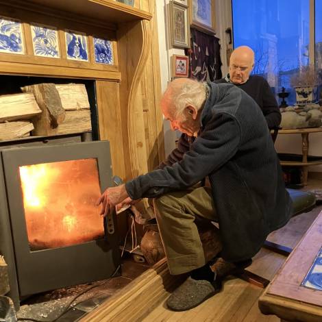 They often visited us en route to Tom and family in Yorkshire. Invariably David would go home with yet another big chunk of hardwood carefully chosen from our local wood yard. He stayed with us last July, sadly without the energy to seek out more logs but his indomitable spirit still rose to the challenge of diagnosing a problem with their controversial electric car. Our last sight and memory, so very “David”.