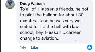 My heart and prayers are with Kathryn and the family. I truly believe Doug left this physical world for heaven in his beloved hot-air balloon. This time, he did not have to fly, wondering where he would land. He is free and watching over his family, until one day when they, too, will join him in his hot-air balloon.