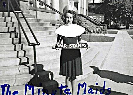 Eileen started life in rural Idaho and spent her pre-school years in Homedale with her parents and sister Pauline, who was 13 months younger. Pauline was a cherished friend her entire life. The family moved to Boise when the girls started school. During these years she loved swimming, skiing and dancing. She was a lifeguard at the Natatorium, a large swimming pool in Boise. During her high school and college years, WW2 was happening. With an airbase nearby in Mountain Home, she and her sister enjoyed attending dances at the base and socializing with the troops. She also sold war bonds during this time (picture below). Eileen graduated from the University of Idaho in Moscow in 1948 with a major in sociology and a minor in physical education.