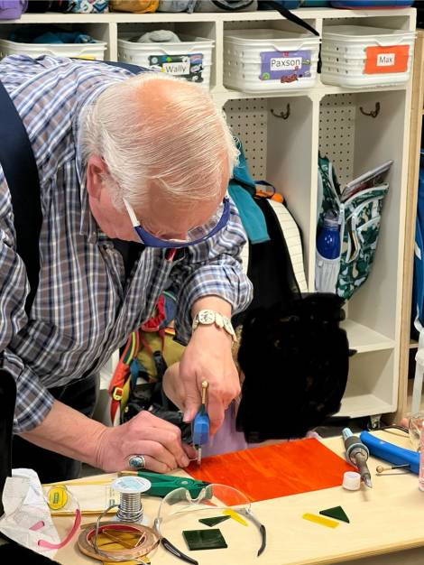 In 1977, Jim moved to Alaska, where he made his home in Girdwood. There, he established his stained glass studio and designed and built his own home. He often said he made a living through his art, a reflection of both his skill and his independence. Over the years, he became known for his work across the state, traveling as an artist-in-residence to rural communities. He taught both students and adults the art of cutting and assembling stained glass, leaving behind not only his work but also the knowledge he shared.