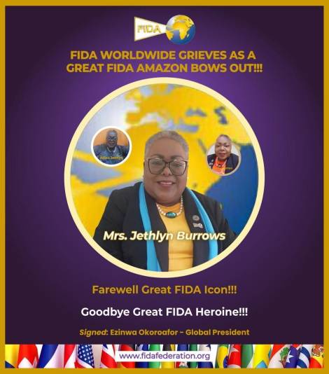 Jethlyn was the ultimate consummate leader in every sense of the word. Her staunch commitment to women’s rights and interests -FIDA especially - was unparalleled. As FIDA World President and beyond, she ensured at all times that FIDA functions optimally, with no vacuum in any sphere of our global operations. In so doing, she it was who nurtured and propelled me on to my highest echelons of service in FIDA INTL -from Chairperson, FIDA INT’L Editorial Board to Country Vice President, FIDA USA to Regional Vice President, FIDA North America and currently Director, FIDA INT'L.