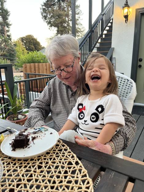 Jimmy sold the restaurant and retired in 2017. In 2023, following the birth of his granddaughter Evy, he and Susan moved out of Texas for the first time in their lives, settling down near his children and just down the block from Chris in Oakland, California. There, he spent his final days enjoying the wonderful weather of Northern California. Until his final weeks, he was still walking two miles a day with his dog Emmylou. Like everywhere else he had lived, he quickly became well known and beloved by his Oakland neighbors. He regularly accompanied Lindsey to the Dolphin Club in San Francisco for swimming adventures in the San Francisco Bay. While he refused to get in frigid waters himself, he loved going for a post-swim Irish coffee at the legendary Buena Vista across the street, one of his old haunts from his San Francisco business trips in the 1970s.