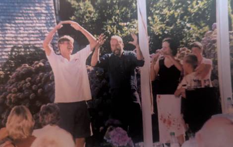 - Being his doubles partner at a badminton tournament in Yelm, wearing our IOWA t-shirts and posing as ringers from out of town