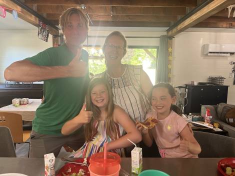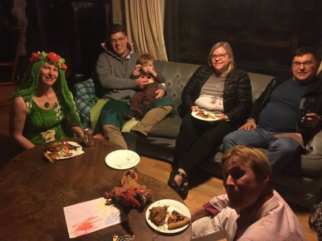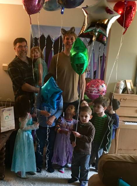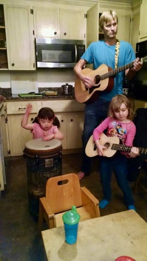 • Singing music for Joe about Joe at the double Joe birthday party with the Webb sisters.