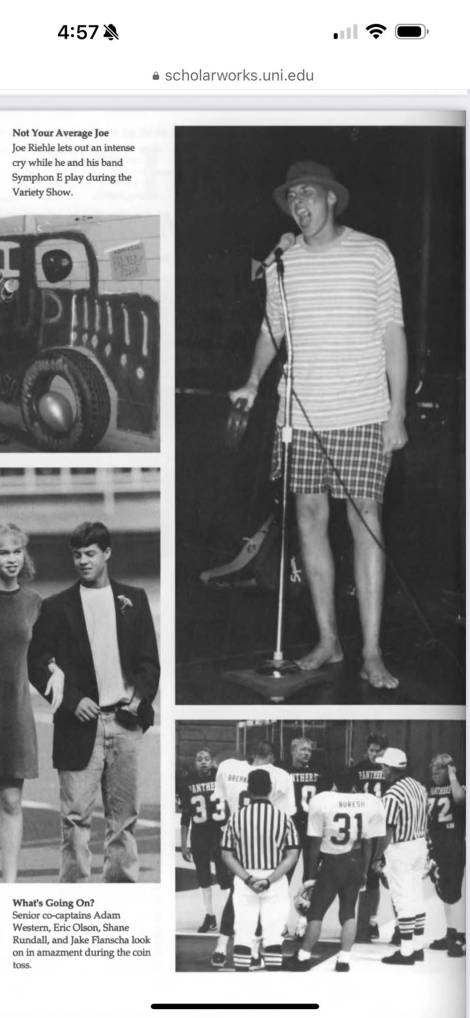 Joseph John Riehle was born on July 26, 1979, in Cedar Falls, Iowa to Ruth and Chuck Riehle. Over the course of his childhood, he established himself as an independent, singularly creative, and empathetic human being. In one year, he went from 5’4” to 6’4”, growing into his giant hands and similar heart. He graduated from NU High in 1997 and then from UNI with a degree in communication, at which he was an expert. Joe was the heartbeat of many creative happenings in Cedar Falls during his teens and early 20s, performing in local bands, acting in films, and becoming a prolific poet; he was also the leader of the all-inclusive, a barefoot pied piper. Joe gave you a nickname and you were part of his pack forever. He made everyone feel like the most important person on earth, and that if you came together and led with imagination, everything would be ok. He was the perennial champion of the Ragman Wrestling Federation, founder of Ragman Records, and played & worked at Jane’s House for many years, his home away from home.