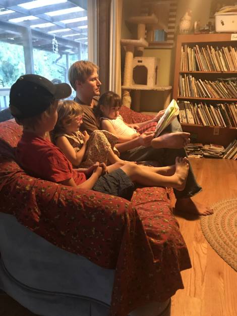 He left Cedar Falls in the mid-2000s for a short stint in Tennessee with Jenn T prior to resettling in the Pacific Northwest for the remainder of his life. In Seattle he helped raise his nephew Jonah, creating numerous worlds for them to live in and characters to play. He then moved to Olympia, where he met Nellie and her son Raven. He and Nellie married on roller skates in 2009 and gave birth to Wren in 2010. Joe, Nellie, and Ruth ran Color My World Child Care for a decade, teaching joy, compassion, and dancing to dozens of small children and their families while running a Puzzle Dojo. He analyzed numerous board games in a highly informative and delightful way as Hello Gregor, frequently wrote songs about daily household happenings, home schooled Wren about history, and bicycled to Yelm for a convergence. He ultimately assumed the role of Volunteer Coordinator at the Thurston County Food Bank, which he called his dream job, as he was able to work with people he adored, write a hilarious weekly newsletter, provide nourishment to people, and meet Emily, who became his fiancée.