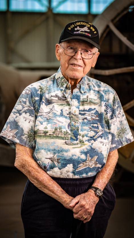 John grew up in Long Beach, California. The day after the attack on Pearl Harbor, December 8, 1941, he recalled feeling “a wave of patriotism” and knew he had to join the fight and help his country and fellow man. He enlisted in the United States Army Air Corps and went on to serve as a B-24 flight engineer and top turret gunner with the 8th Air Force, flying perilous bombing missions over Europe during World War II.