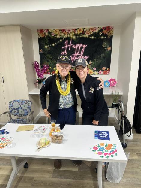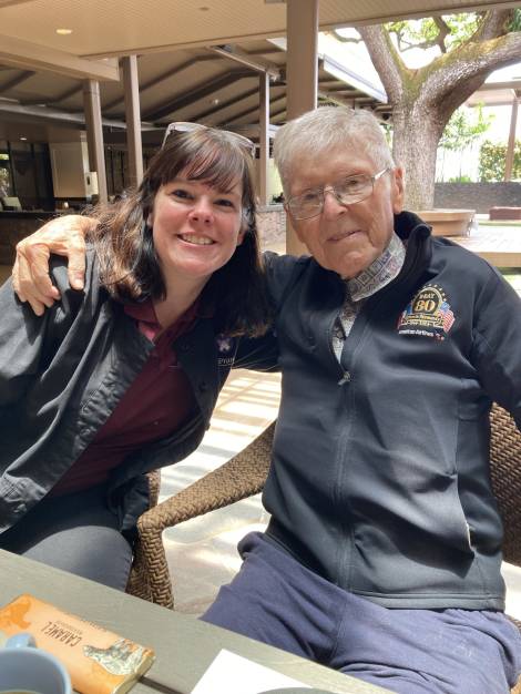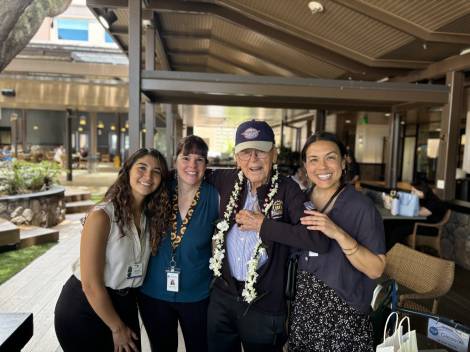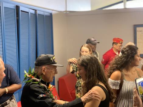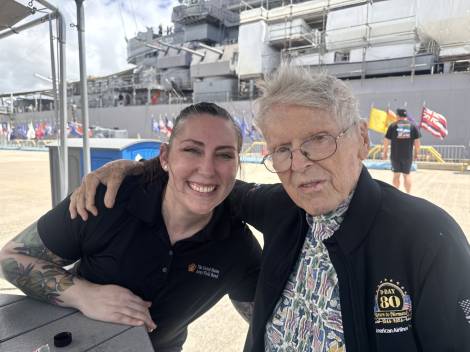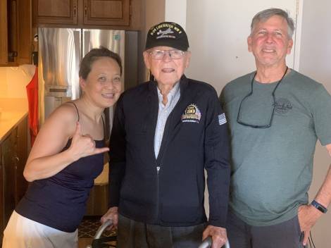 John was a founding member of the Pearl Harbor Aviation Museum, and throughout his centenarian years remained an active and beloved volunteer, hosting weekly meet-and-greet and storytelling sessions where visitors could ask questions and hear firsthand about his time in service. He was also a proud ambassador of the veteran nonprofit Beyond The Call, participating in numerous programs and events throughout the year and leaving a lasting impression on all who spent time with him and heard his stories. He had the honor of representing the state of Hawaii as the only WWII veteran from the state to attend the 80th Anniversary Commemoration of D-Day in Normandy, France, hosted by American Airlines, accompanied by his daughter, Colleen.