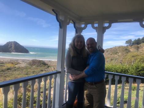 Kim and Marcus were married in October, 1994 in a picturesque wedding on the Mendocino coast. Often, they would return there for anniversaries and get-aways. They had just celebrated their 31st anniversary there, on a magical trip visiting close friends.