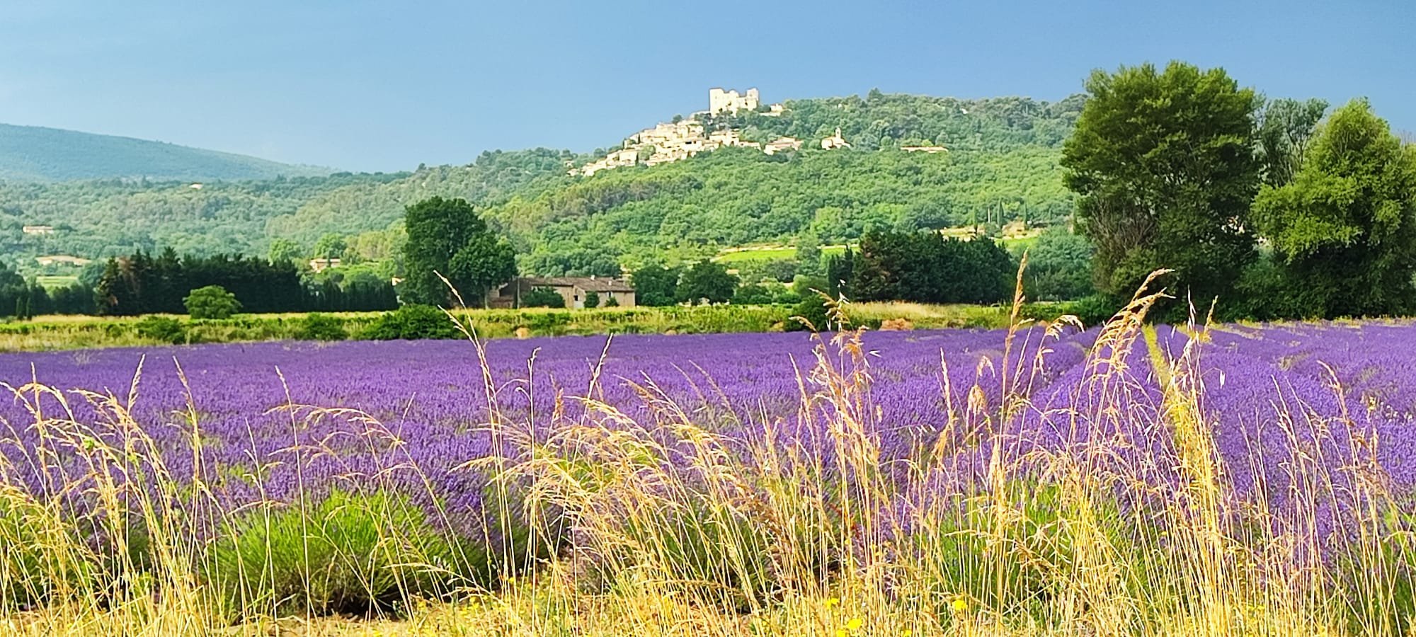 Across the lines of straighter darker trees,