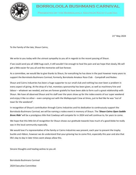 Not only a personal friend to us all, Shaun, through Cairns Ind, was also a very valuable part of our operation team to make our big annual Campdraft and Rodeo the success it is.