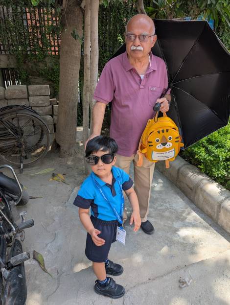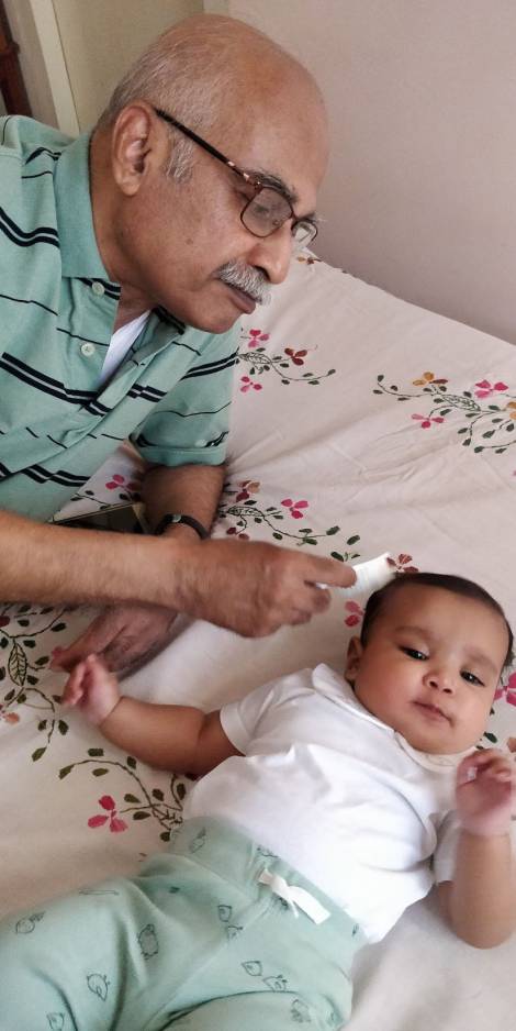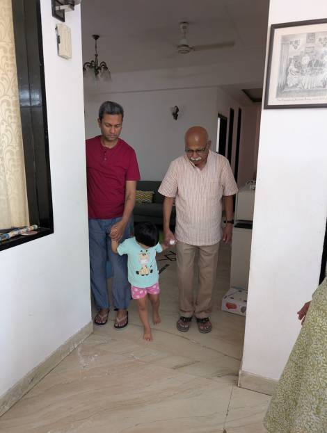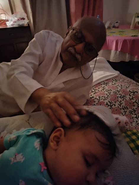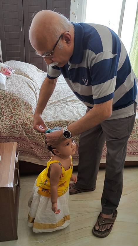 He had a phobia about seeing doctors, dentists and air travel. Earlier days he used to travel only by train to Delhi and later on somehow he got over that fear and started using the flight. I think it might perhaps have been the arrival of his grand daughter and the eagerness to see her often that helped him get over that fear.