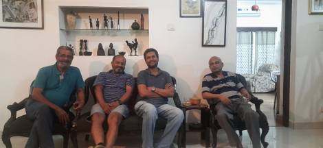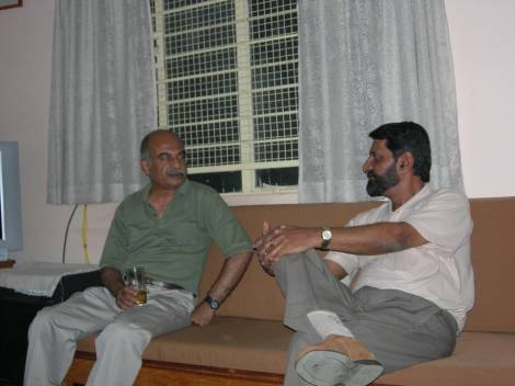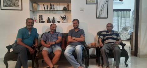 Two years back an accidental fire broke out in their Bangalore house when they were in Delhi. At that time he called Joe Chacko and me rush to the location. By the time we reached there, the neighbours had managed to douse the fire with the help of the fire brigade. Extensive damages had happened to the house. Later on Vivek and his son in law Nihal came down to Bangalore and stayed at Elsieaunty’s ( my mother in law’s) house which was vacant then, and got all the repairs for their house done. Every evening we would all meet at our house for drinks and dinner and share conversations about the happenings of the day.